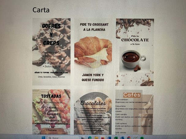- Tarjetas de visita y carta de desayunos y meriendas.